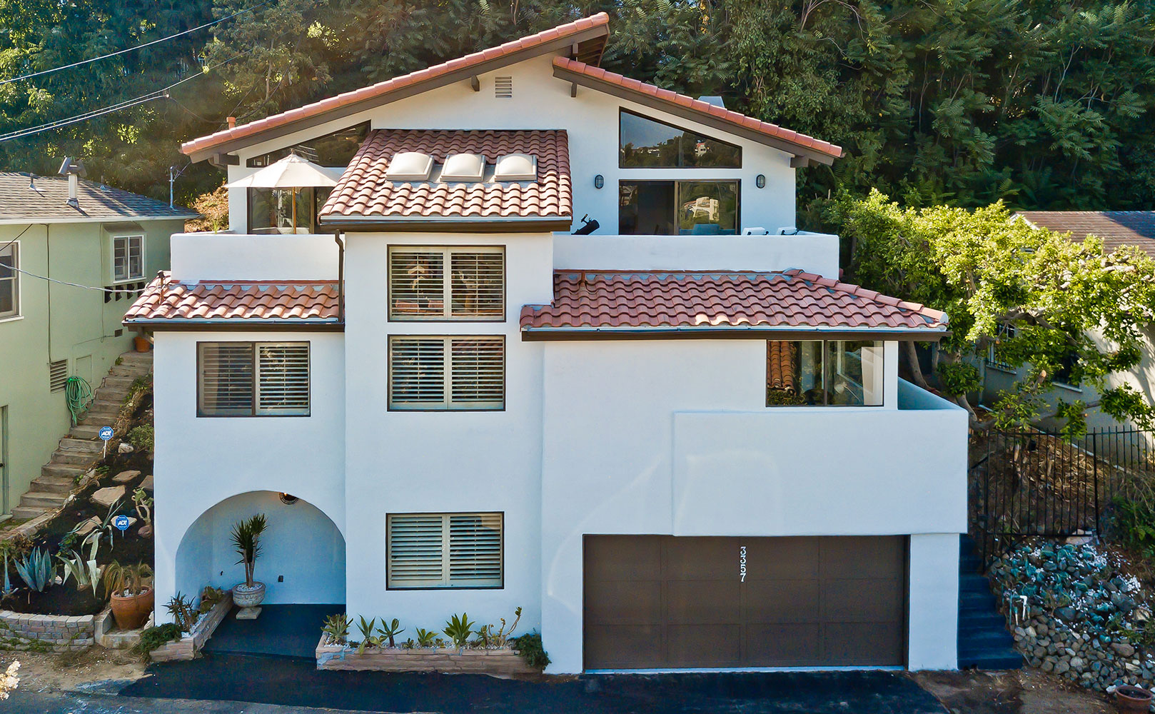 Located in the desirable Lake Hollywood Manor, this stylish, cool, and Sophisticated home is dramatic and inviting. Enjoy gorgeous views from all the main rooms! The living room, family room, dining room, and kitchen have high-beam vaulted ceilings and all connect to outdoor dining and entertaining either on two decks or in your backyard. The sleek eat-in kitchen is complete with a Viking stove-top and great cabinet space. The master suite and bath are spacious and sumptuous, with an area perfect for an office, yoga, or lounging with a good book. The outdoor decks have serene and amazing views of Cahuenga Peak, Wisdom Tree, the Hollywood Hills, and even a peek-a-boo view of the Hollywood Sign. Experience total privacy on your large backyard deck. A full-"SUV" size two-car garage and tons of storage! Amazing opportunity and priced to sell quickly.